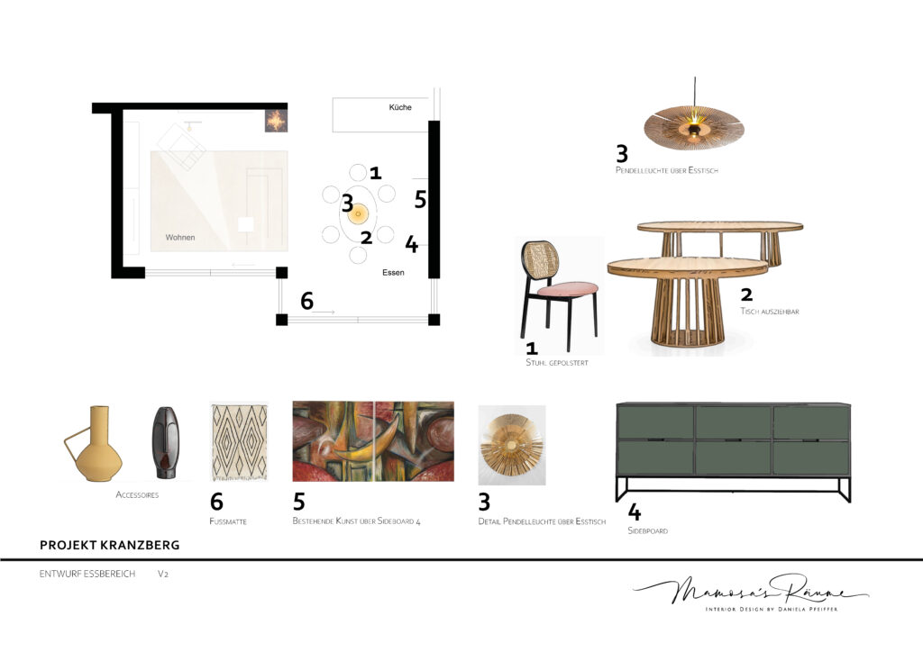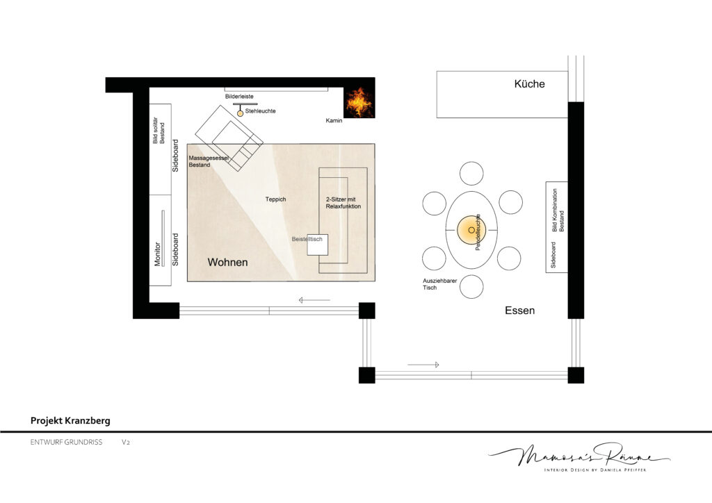 Bei diesem Projekt hat sich meine Kundin einen Möblierungsentwurf zur Umgestaltung ihres Wohn- und Essbereiches gewünscht.